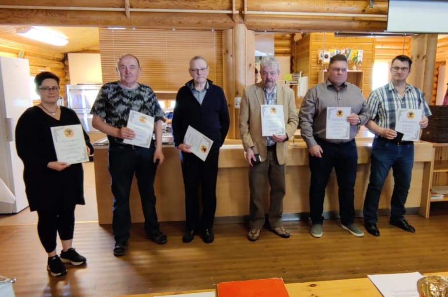 Eränkävijöiden johtokunta palkitsi kuusi ansioitunutta, aktiivisesti toimintaan osallistunutta seuran jäsentä, taiteilija Saija Lehtosen suunnittelemilla upeilla ansiomerkeillä, joiden materiaalina oli käytetty hirvennahkaa, hirvenkynttä ja lehtikultaa. Kunniakirjat ja ansiomerkit jakoi Eeva-Marja Jokinen ja Mika Leppilahti. Ansiomerkkien saajat: Tanja Lillstrang, Jalo Viiru. Silvo Poikonen, Juha Sekki. Sami Lillstrang ja Reijo Viiru.