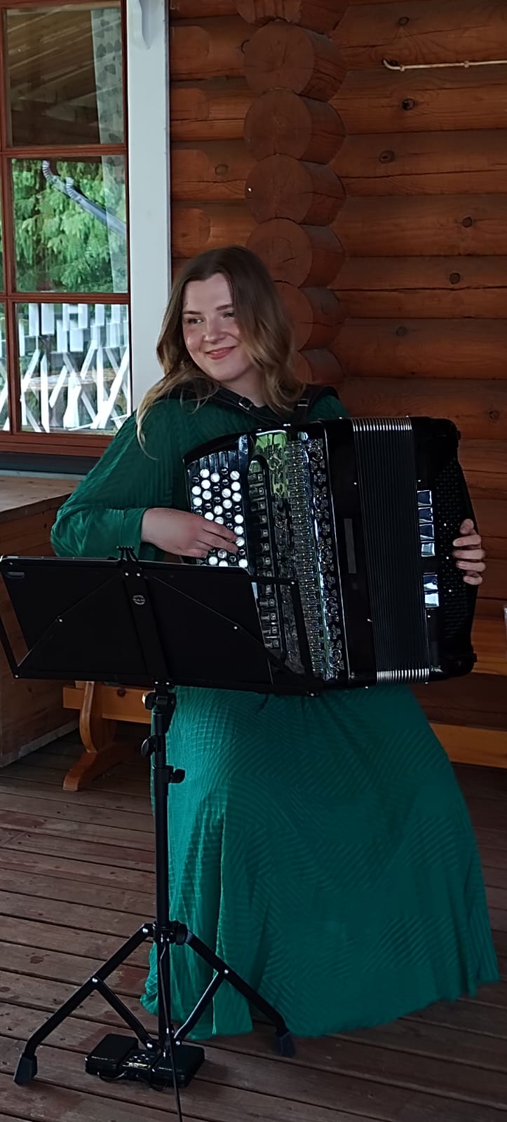 Juhlassa musiikista vastasi Harmonikkataituri Sonja Kola. Hän voitti jo 9-vuotiaana Hopeisen harmonikan ja 10-vuotta myöhemmin kultaisen harmonikan Suomen mestaruuden. Ja se kyllä näkyi ja kuului hänen upeissa esityksissään. Saimme juhlaamme esiintyjän, joka on ehdotonta eliittiä harmonikkamusiikin saralla. Kiitos Sonja
