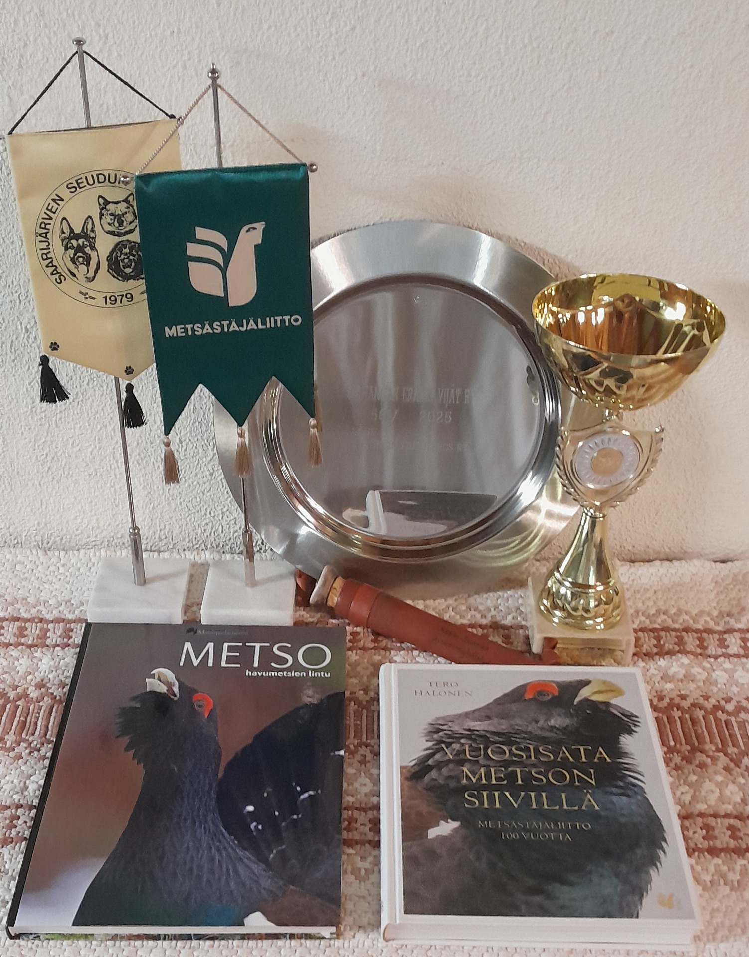Metsästyskoira esittelyssä oli mukana lupaavia nuoria- ja myös vähän vanhempiakin jo menestyneitä metsästyskoiria. Metsästyskoira esittely kiinnosti myös juhlayleisöä. Kiitokset esittelyyn osallistuneille koiranomistajille.
